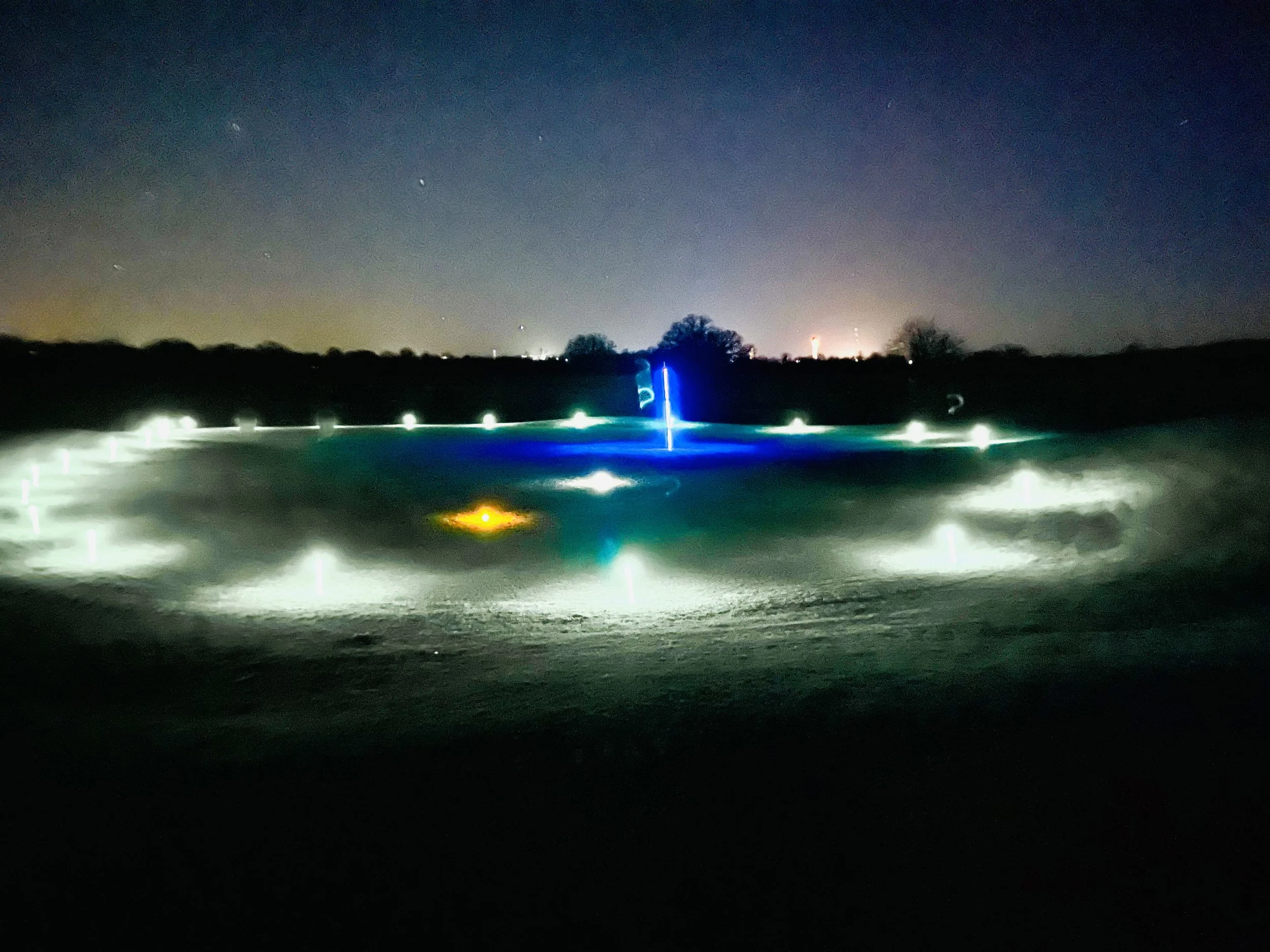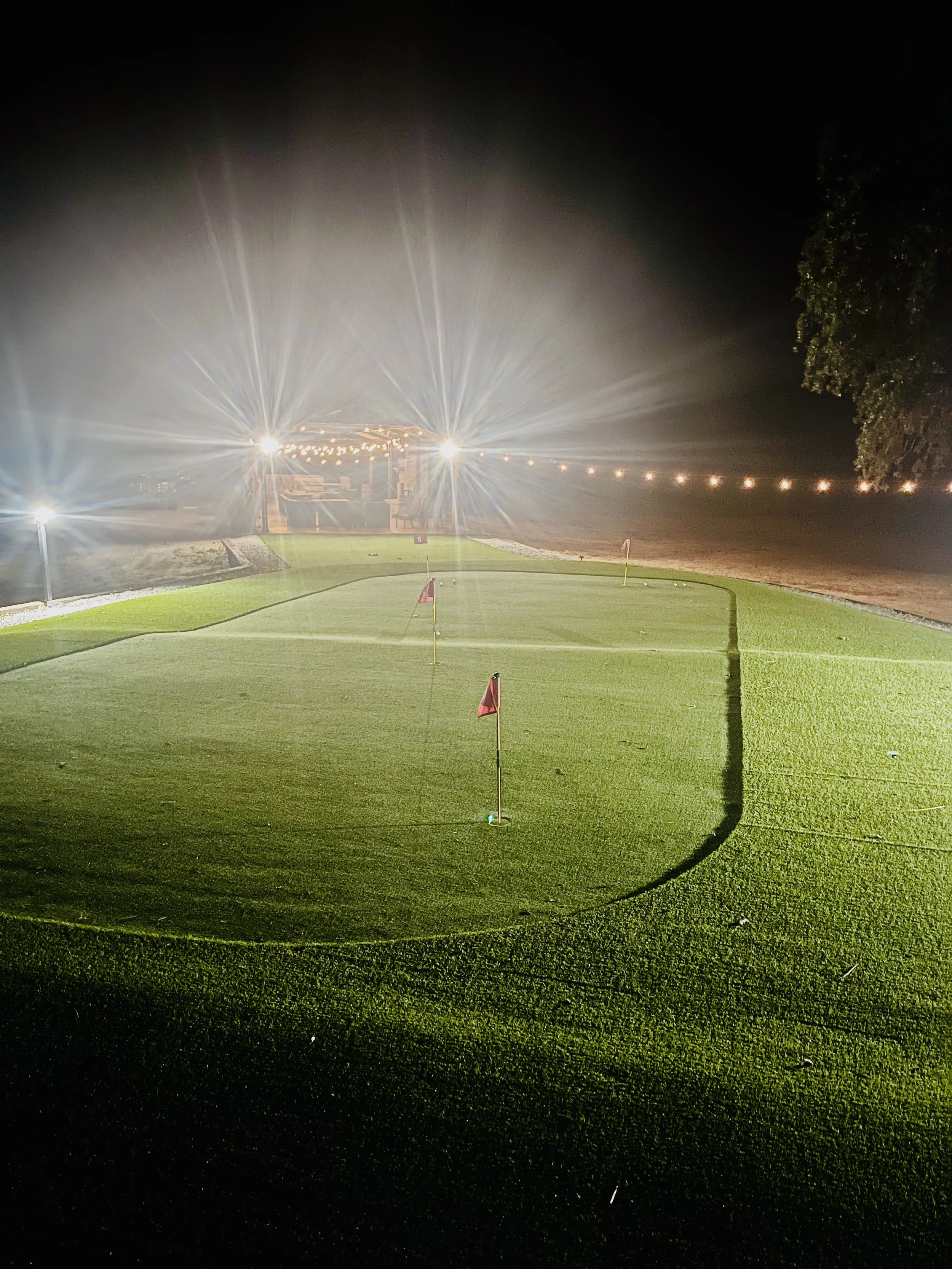 Under the lights 2,000sf putting green and 12ft Glow Gear Range Targets